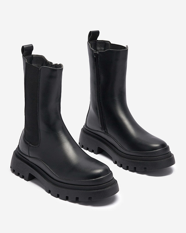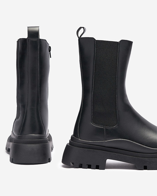 - Stylové dámské kozačky na pevné podrážce. Svršek je vyroben z ekologické kůže, s elastickými vsadkami na bocích. Střed je podšitý látkou, zatímco stélka je z ekologické kůže. Poznámka: výrobek má na materiálu stopy lepidla.