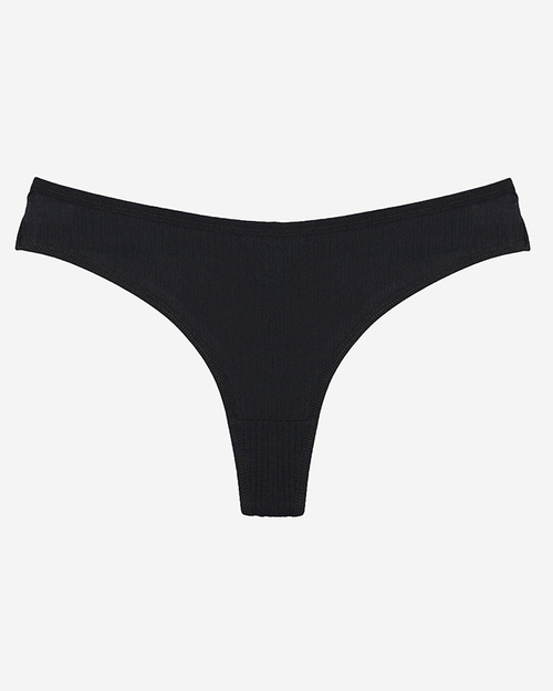 Černé žebrované dámské kalhotky tanga s nápletem- Spodní prádlo