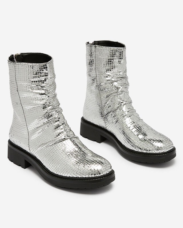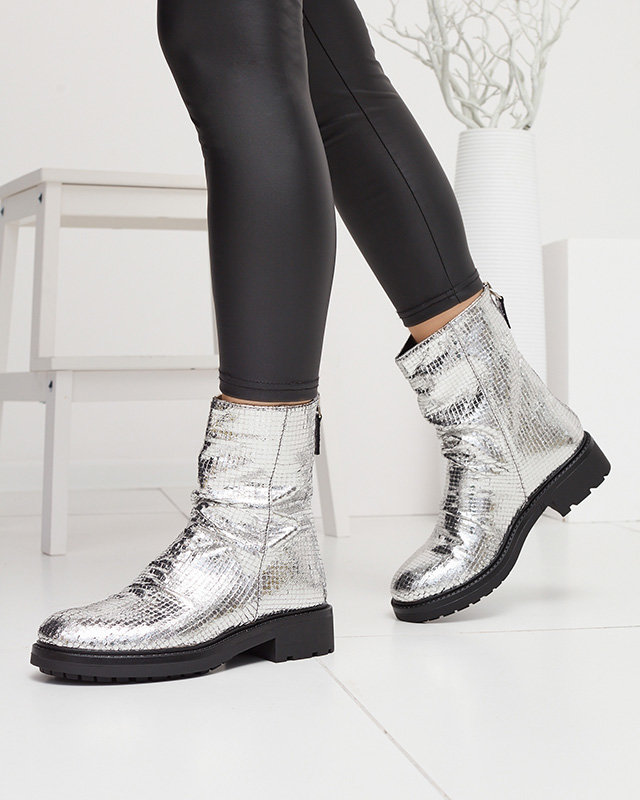 OUTLET Stříbrné dámské kozačky s ražbou Ahhy- Obuv