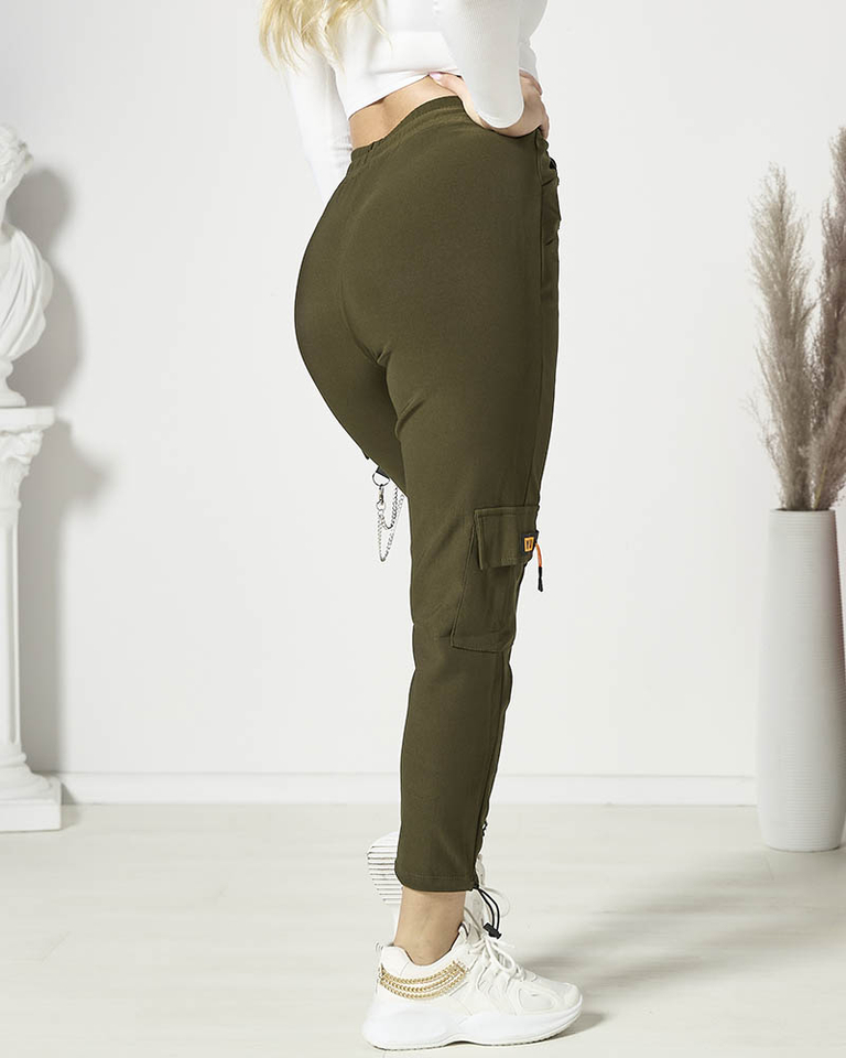 Tmavě zelené dámské bojové kalhoty s řetízkem- Oblečení