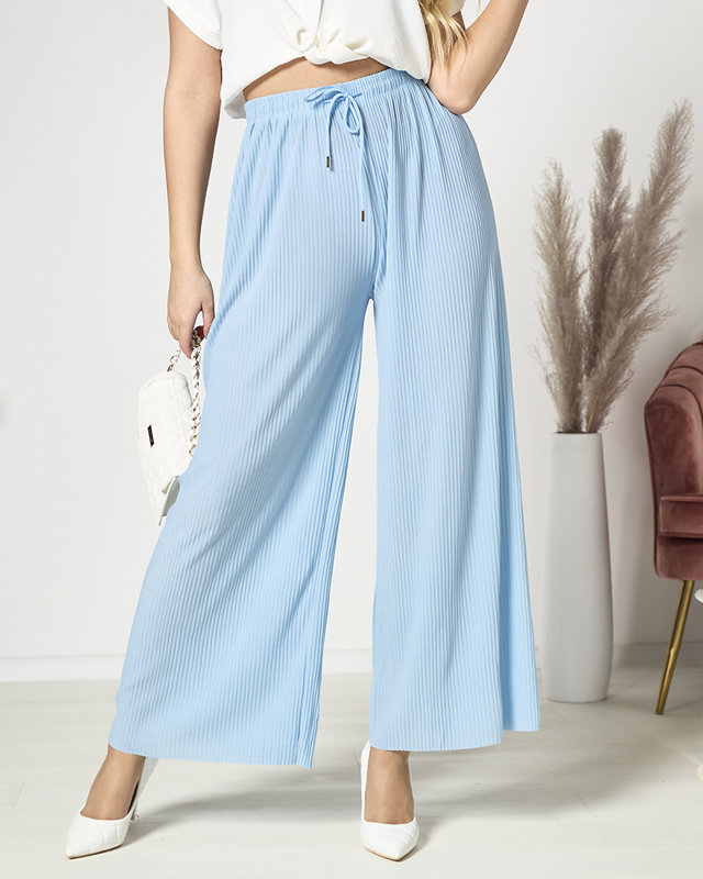 Dámské široké plisované kalhoty palazzo v modré barvě - Oblečení
