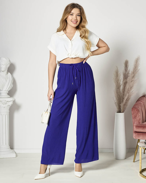 Dámské široké plisované kalhoty palazzo v tmavě modré barvě - Oblečení