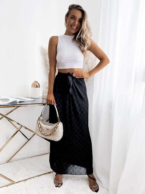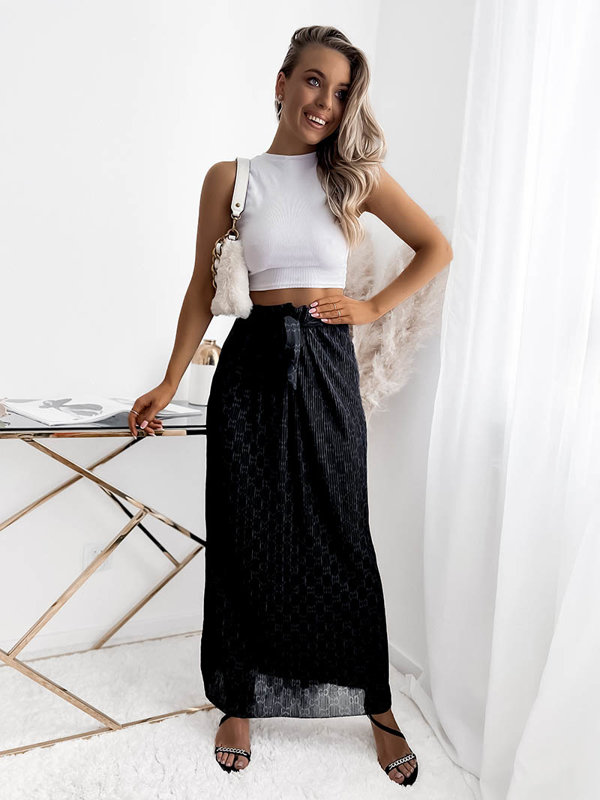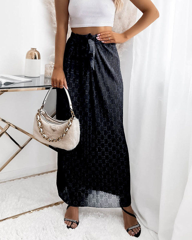 Černá dámská plisovaná maxi sukně se vzory - Oblečení