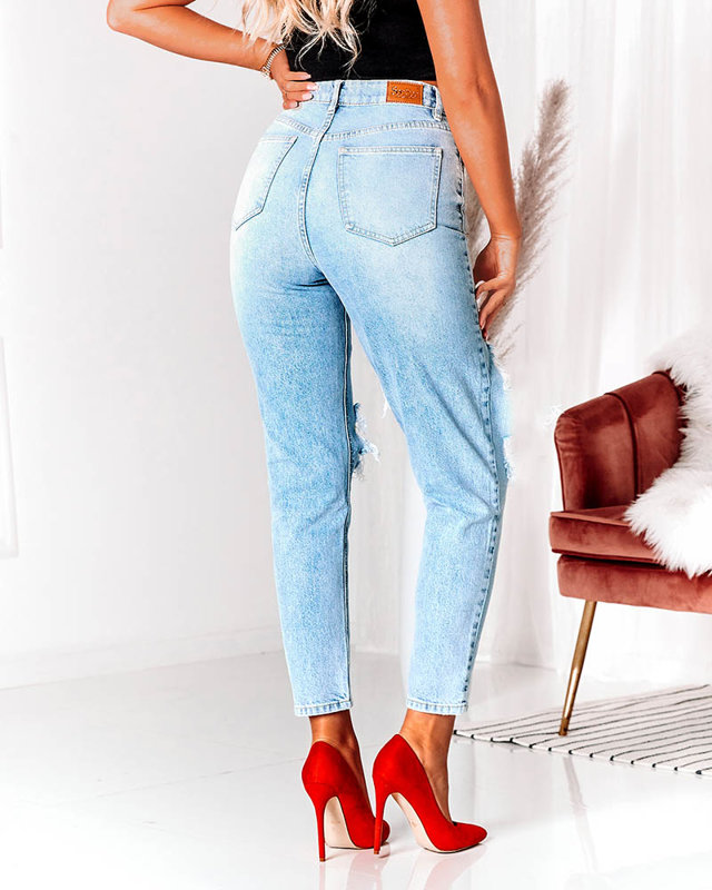 Modré dámské džínové kalhoty s dírami - Oblečení
