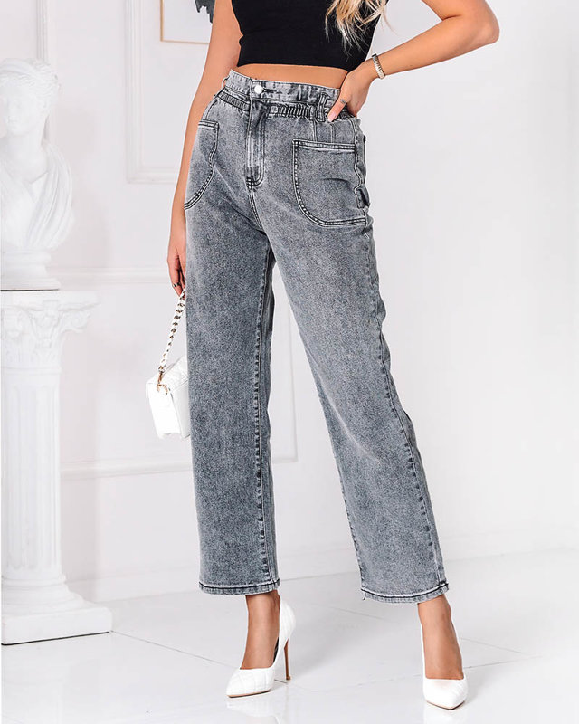 Šedé dámské džíny s širšími nohavicemi - Oblečení