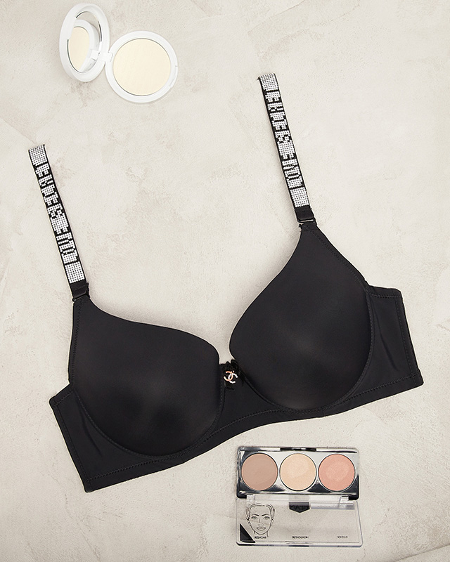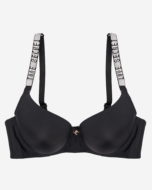 Hladká černá vyztužená podprsenka se zdobenými ramínky - spodní prádlo
