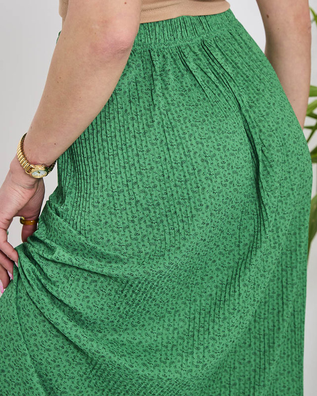 Vzorovaná zelená dámská plisovaná midi sukně - Oblečení