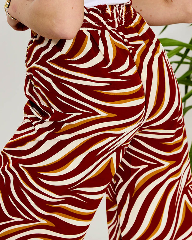 Vzorované dámské palazzo kalhoty v červené barvě- Oblečení