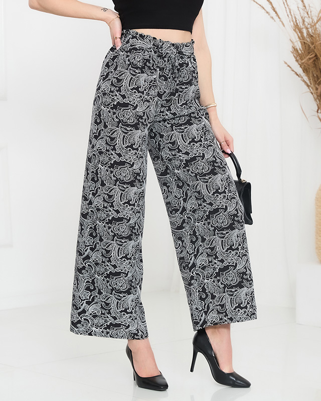 Černé dámské látkové kalhoty s potiskem- Oblečení