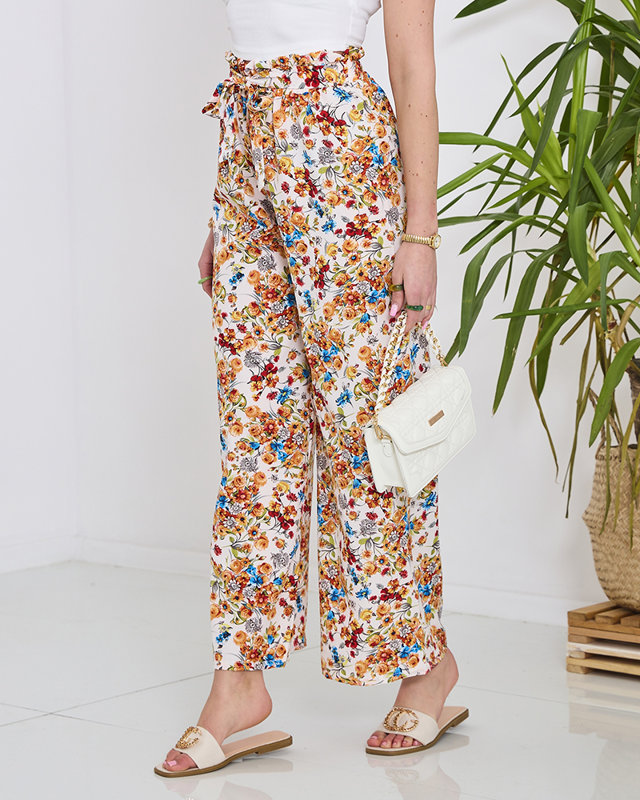 Dámské bílé palazzo kalhoty s oranžovými květy - Oblečení