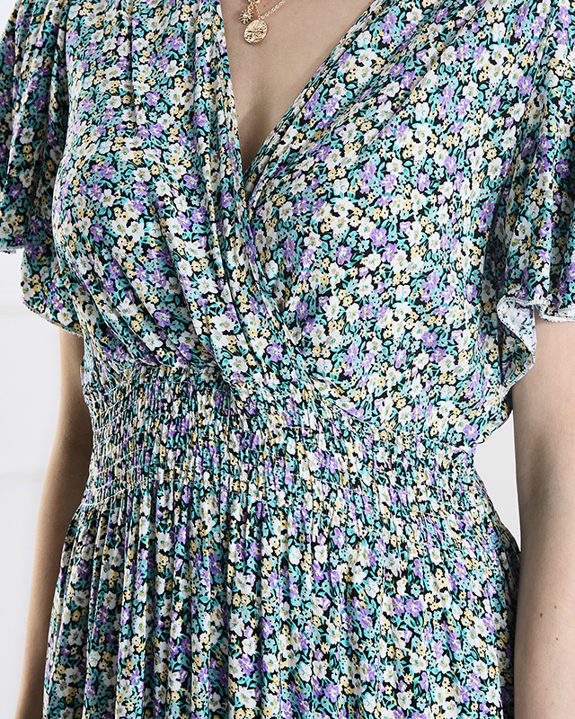 - Jedinečné dámské šaty z měkké a vzdušné látky s květinovým vzorem. Model s obálkovým výstřihem, má pružný pas neboz krátkých rukávů. Skvěle se hodí k džínové bundě! POZNÁMKA: Přesnost měření (+/-) 1 cm.