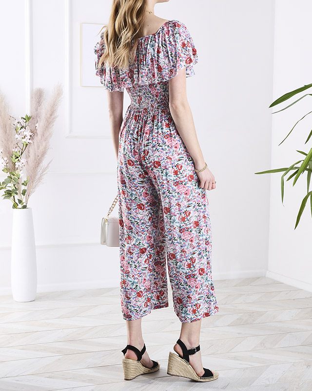 Bílo-růžový dlouhý dámský overal s květinovým vzorem - Oblečení