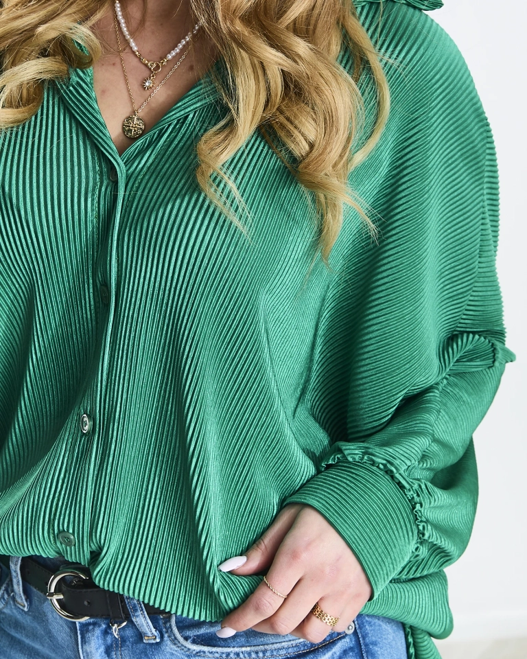 • Elegantní dámská tunika košilového typu, vyrobená ze saténové plisované látky. Má límeček a zapíná se na knoflíky. Střih oversize zajistí, že padne každé postavě! POZNÁMKA: Přesnost měření (+/-) 1 cm.