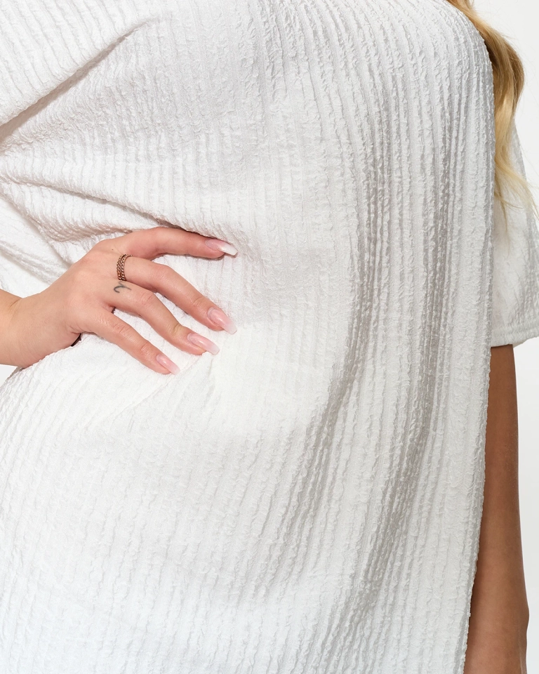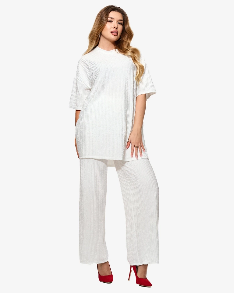 Dámský žebrovaný komplet v bílé barvě- Oblečení