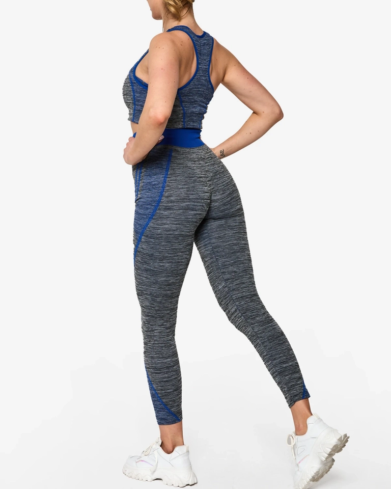 Šedý dámský sportovní komplet s kobaltovými vsadkami - Oblečení