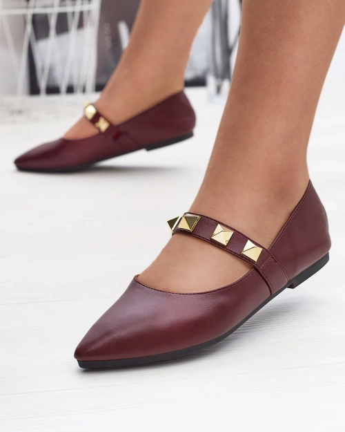 Bordó dámské baleríny na plochém podpatku s cvočky Dejika - Obuv