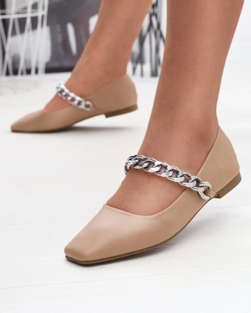 Béžové dámské baleríny s řetízkem Serima - Obuv