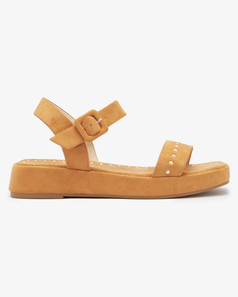 - Dámské sandály na silné podrážce, vyrobené z ekologické semišové kůže. Model zdobený kamínky, zapínání na přezku. Pohodlná dámská obuv na léto!