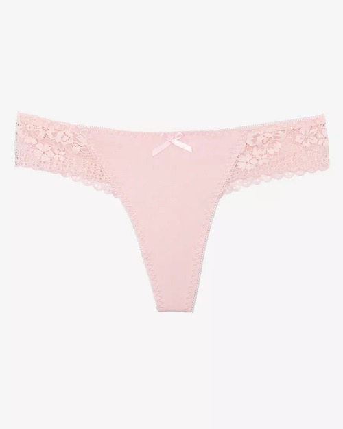 Růžové dámské bavlněné kalhotky tanga s krajkou - spodní prádlo