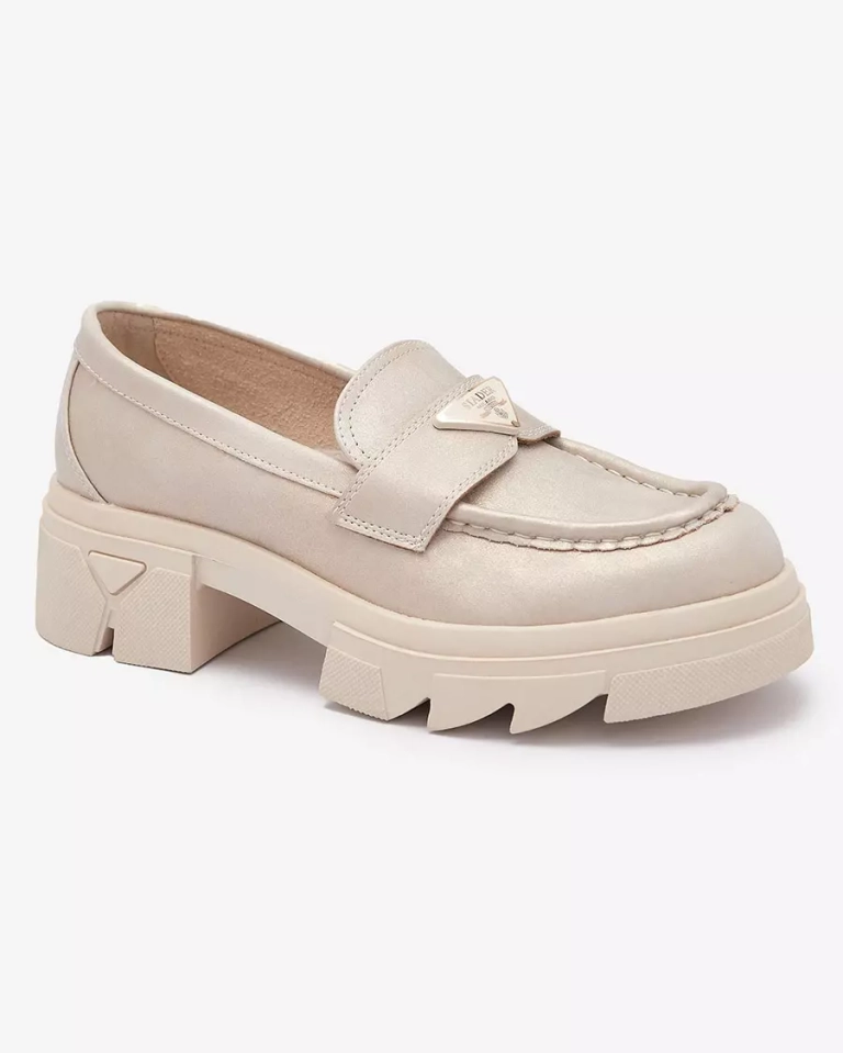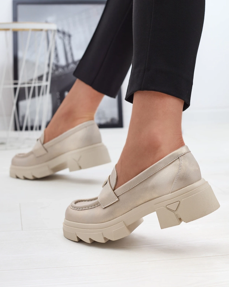 - Krásné dámské mokasíny na pevné podrážce. Model v ležérním stylu a je vyrobený z ekologické kůže, stélka je z přírodní kůže. Na nártu je kovová ozdoba ve zlaté barvě. Perfektní základ pro mnoho každodenních looků!