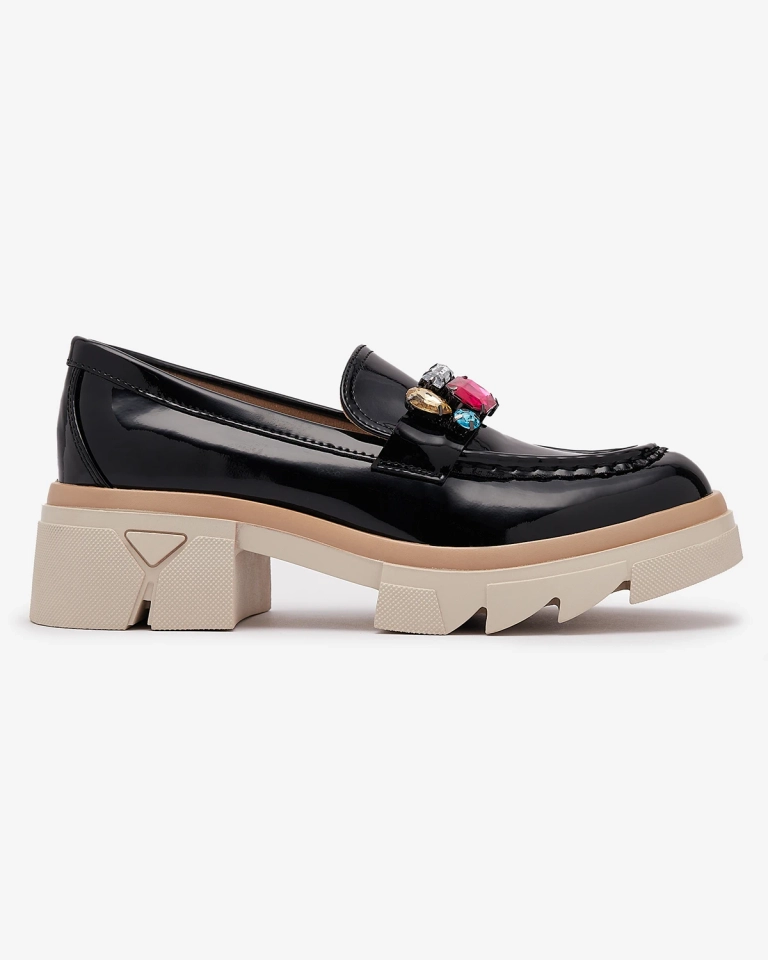 Lakované černé mokasíny s barevnými kamínky Sarix - Obuv