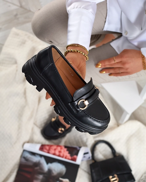 - Klasické, nadčasové dámské mokasíny na pevné podrážce. Model v ležérním stylu je vyrobený z ekokůže, stélka je rovněž z ekokůže. Na nártu je kovová ozdoba ve zlaté barvě. Dokonalý základ pro mnoho každodenních vzhledů!