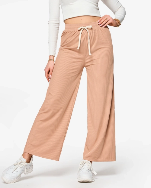 Hnědé dámské široké plisované kalhoty palazzo - Oblečení