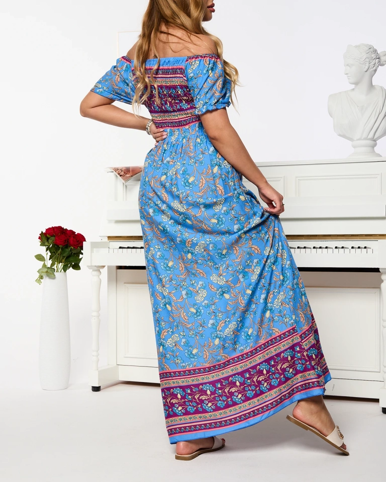 Modré dámské midi šaty s květinovým vzorem - Oblečení