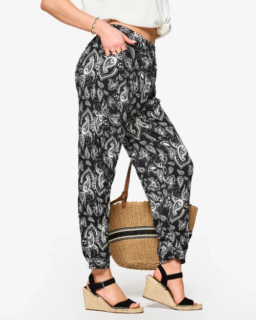Vzorované černobílé dámské látkové kalhoty a'la alladins PLUS SIZE- Oblečení