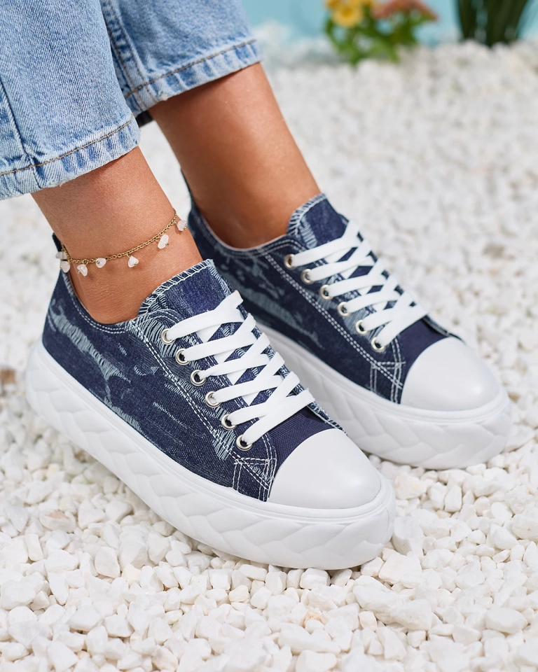 Royalfashion Námořnicky modré dámské džínové tenisky s odřenými nohavicemi Nerolera