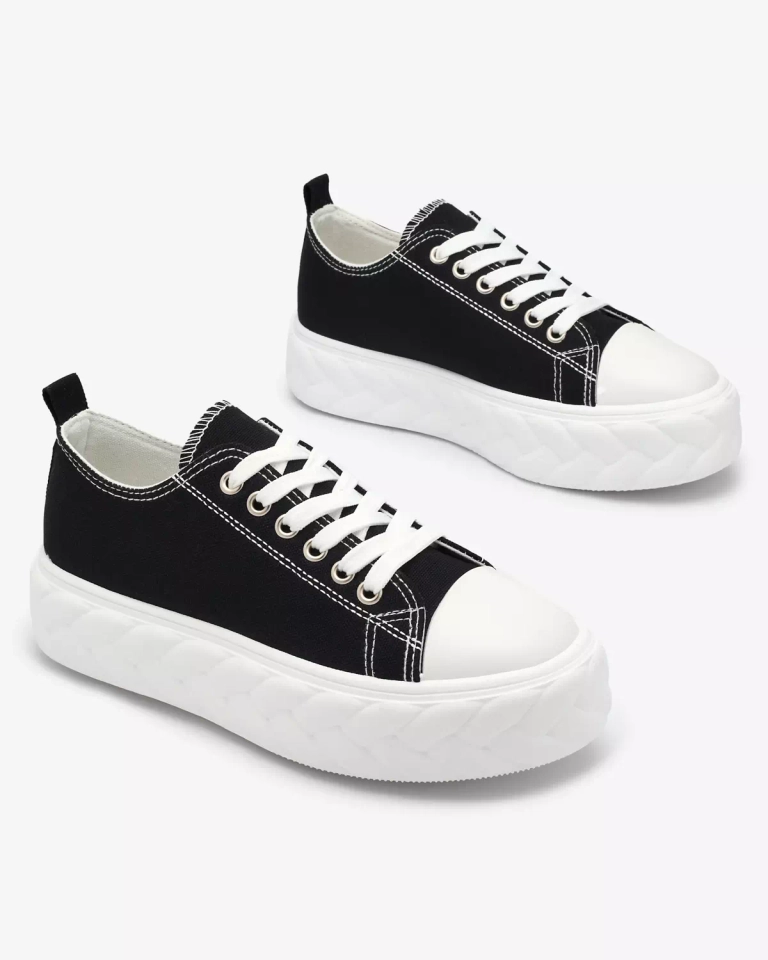 - Mega stylové dámské jednobarevné tenisky. Pár kompletně vyrobený z látkového materiálu. Model na silné platformě zdobený reliéfem a'la kostkovaná. Svršek je na šněrování. Budou se skvěle hodit pro každodenní styling!