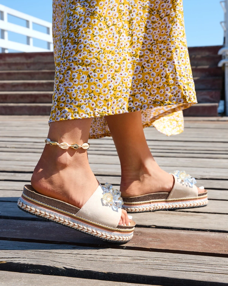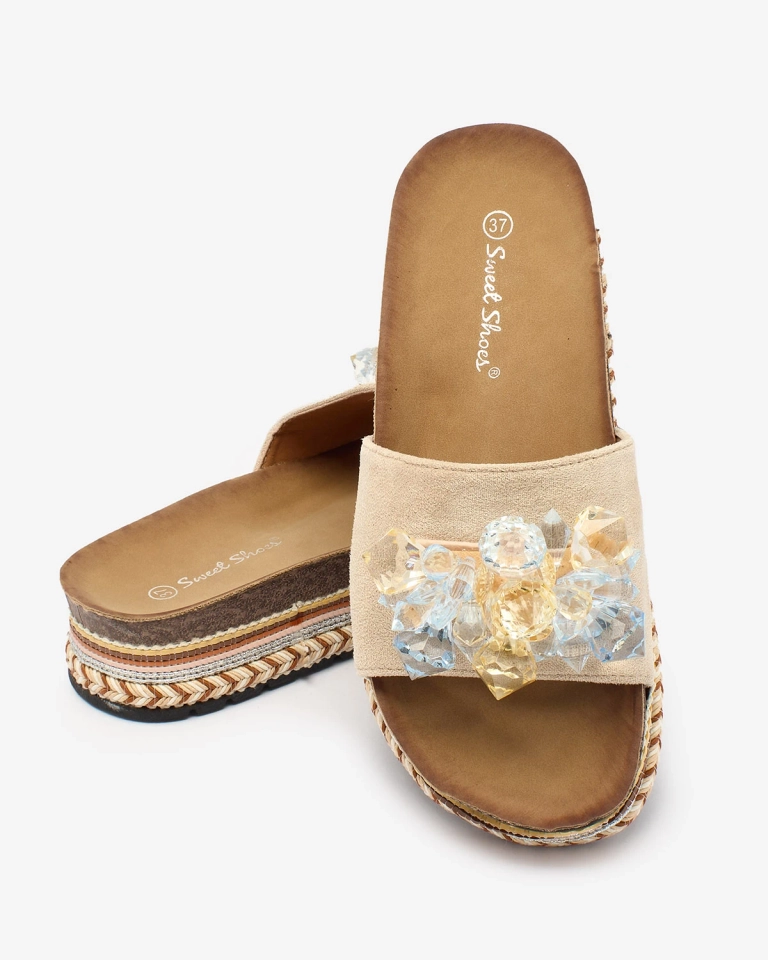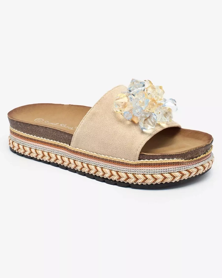 Royalfashion Dámské žabky s krystaly v béžové barvě Bollah