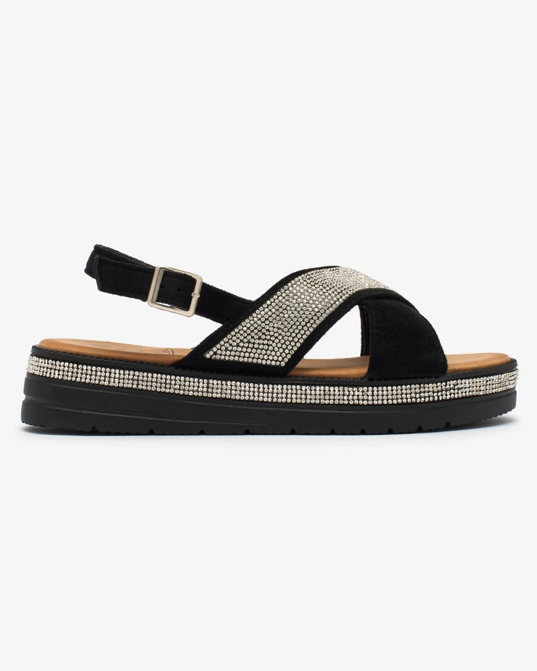 Royalfashion Černé dámské sandály z ekokůže se zirkony Trikys