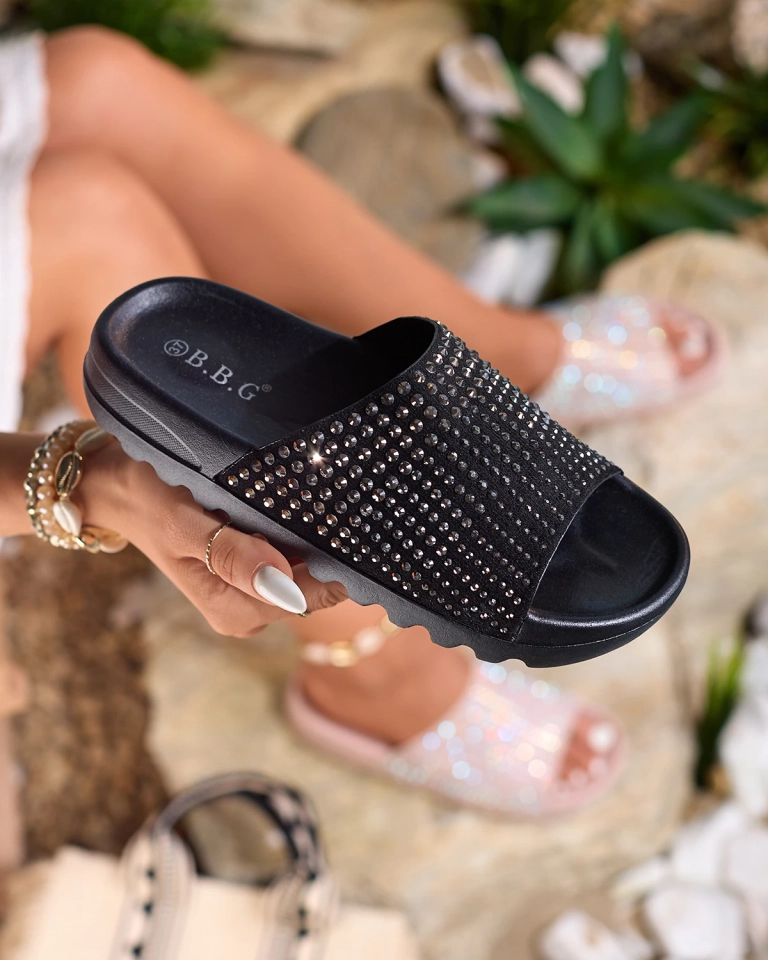 Royalfashion Černé dámské žabky se zirkony Lesixa
