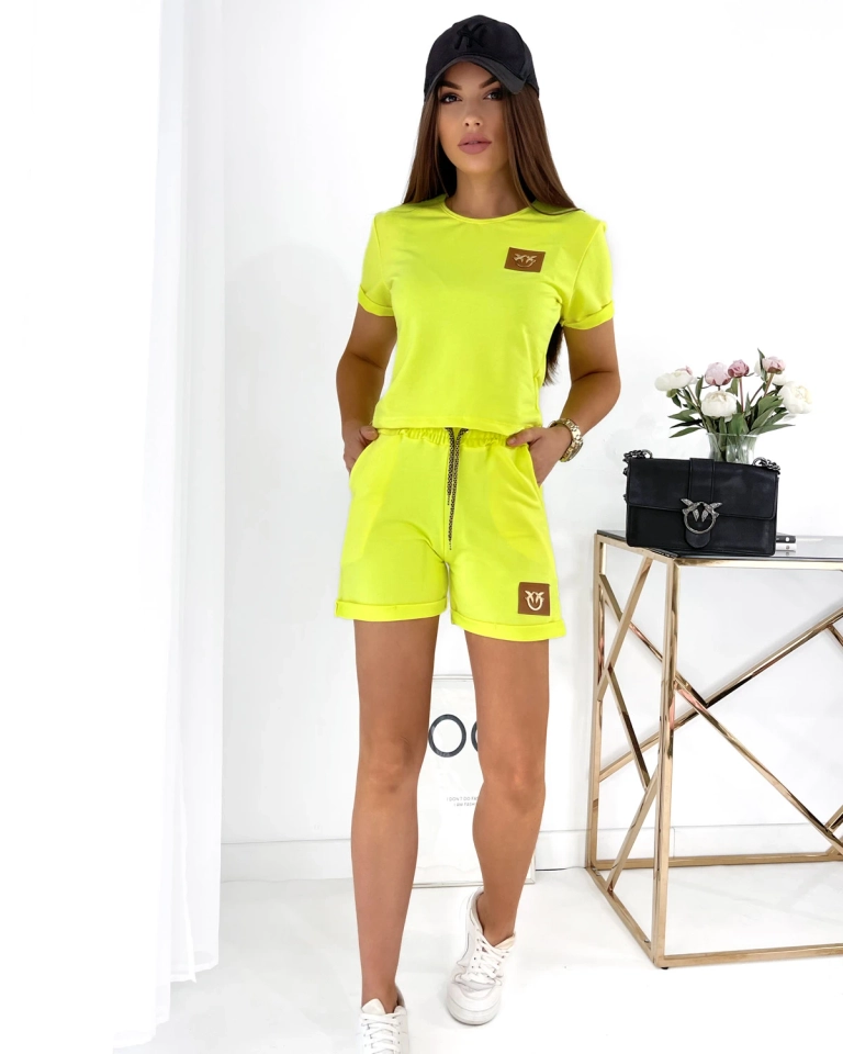 Royalfashion Neonově žlutá dvoudílná dámská sportovní souprava s nášivkami