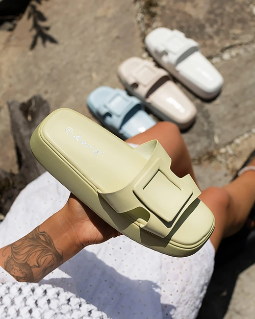 Royalfashion Světle zelené dámské žabky s přezkou Ocurary
