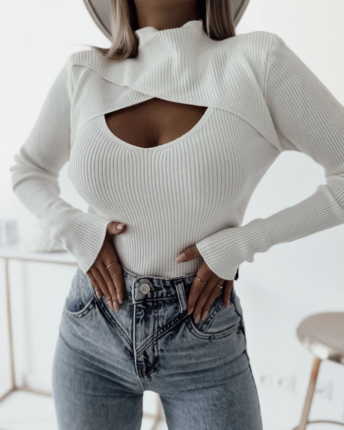 - Módní žebrovaný svetr s rolákem - kombinace stylu a jemného šarmu. Jeho vypasovaný střih jemně zvýrazňuje ženskou siluetu a vytváří módní vzhled. Zajímavý výstřih dodává svetru jedinečný nádech a přitahuje pozornost k výstřihu a krku.