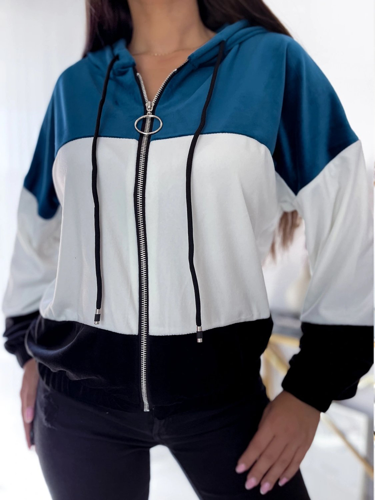 Royalfashion Tyrkysovo-bílo-černá dámská mikina bez kapuce