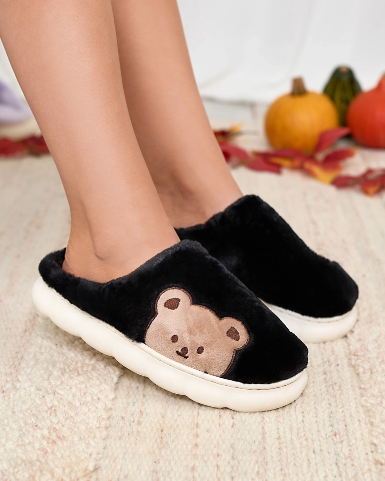 Royalfashion Damskie futrzane kapcie z misiem w kolorze czarnym Fetemes