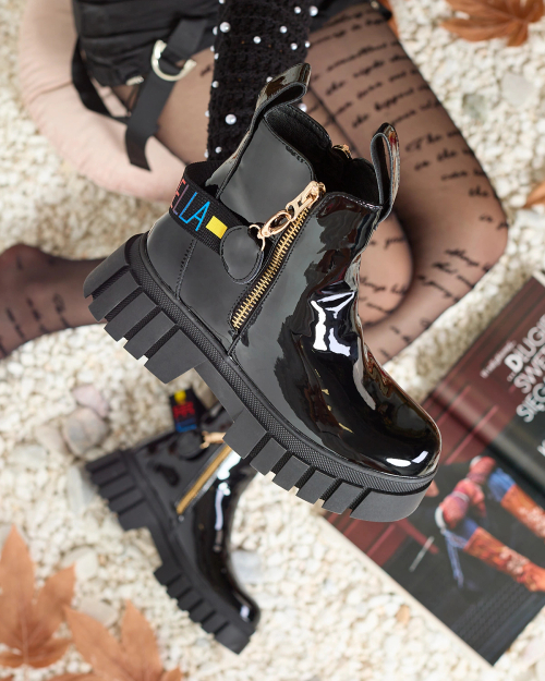 - Stylové kozačky na silnější podrážce z lakované kůže. Zaoblený nos, střed vyplněný kožíškem. Obuv se zapíná na zip. Model má ozdobný zip a odnímatelný pásek. Skvělé boty k elegantním podzimním outfitům!