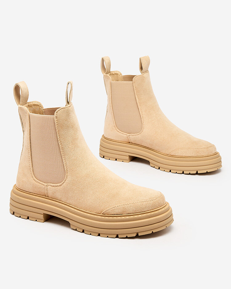 Royalfashion Béžové dámské kozačky s ozdobným páskem Loffdo