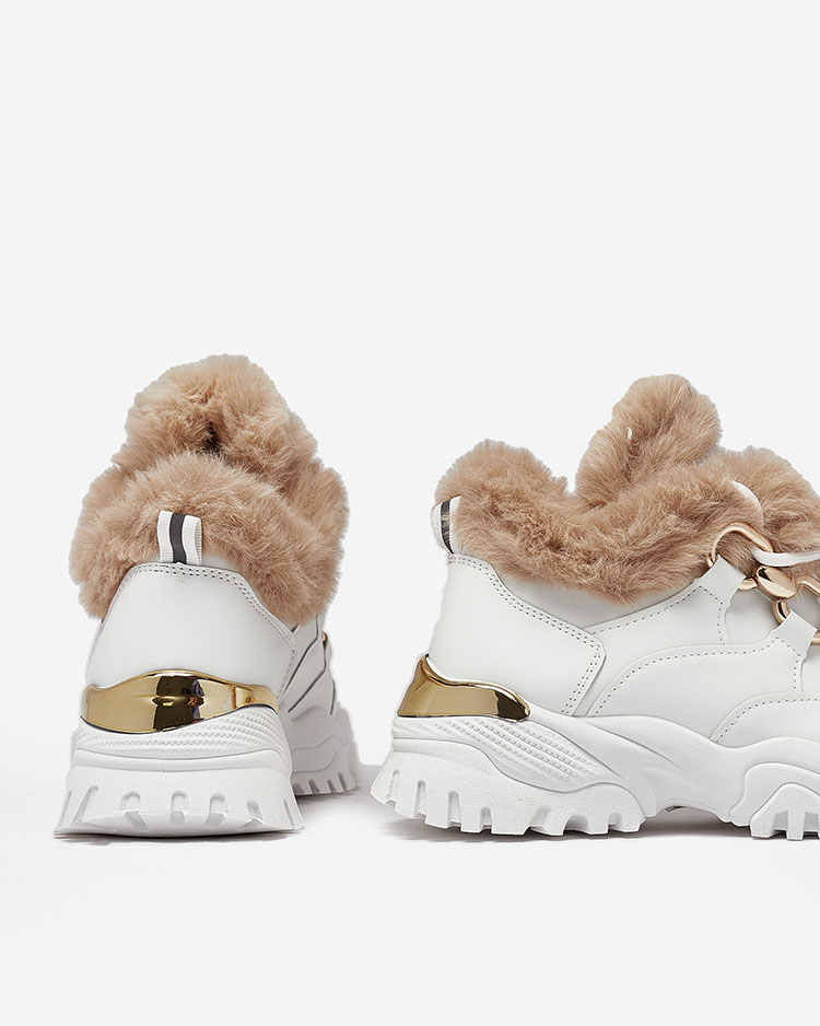 Royalfashion Bílé dámské sportovní tenisky s kožíškem Wicallen