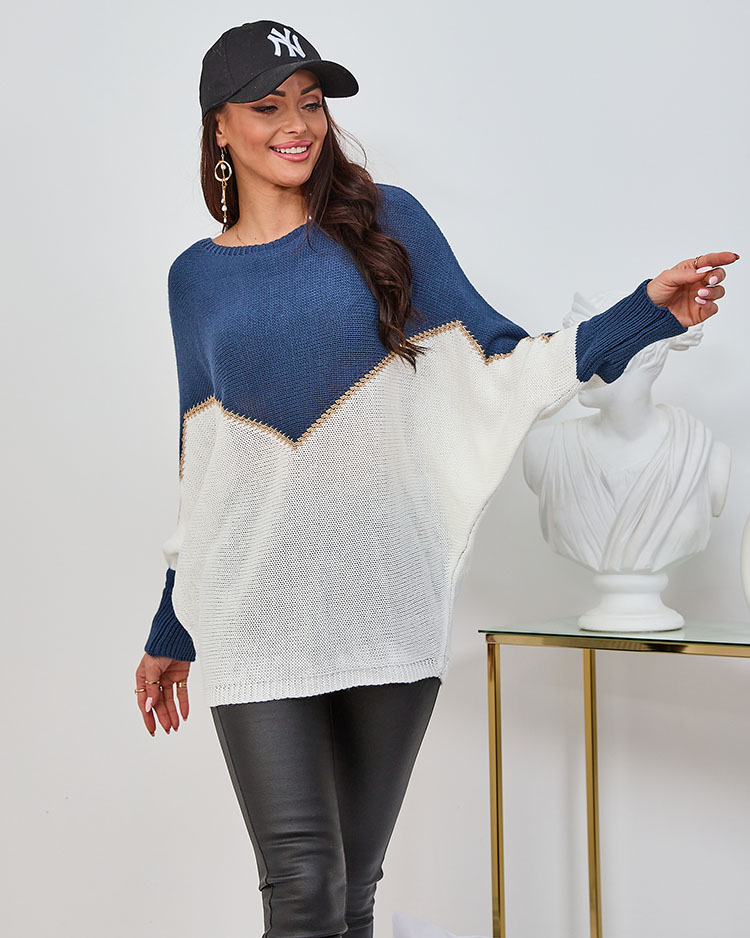 Royalfashion Dámský tmavě modrý a krémový svetr