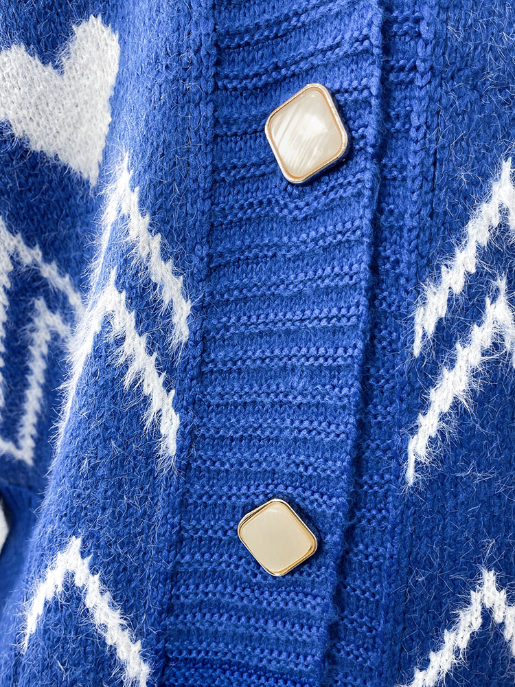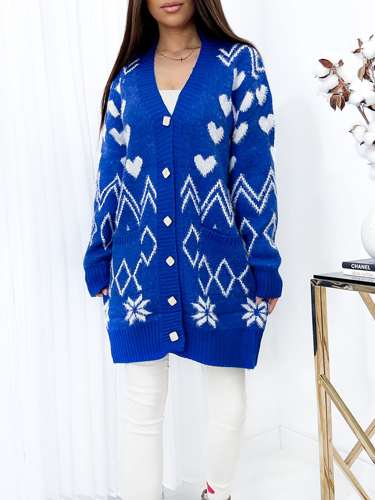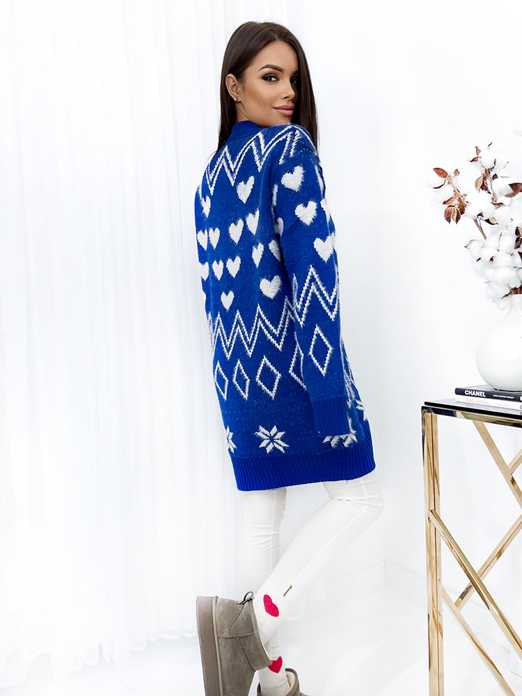 Royalfashion Vzorovaný kobaltový dámský svetr s přehozem