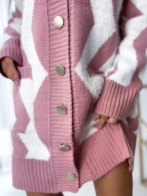 Royalfashion Koalt dlouhý kostkovaný svetr na knoflíky
