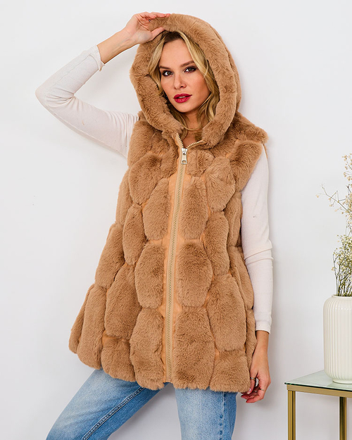 Royalfashion Dámská vesta z umělé kožešiny v béžové barvě