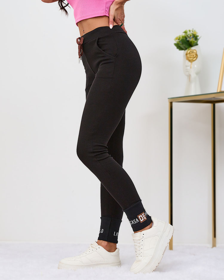 - Klasické dámské tepláky, vyrobené z bavlněného materiálu. Model má dvě nakládané kapsy, má široký pružný pas a zavazování nohavic. Spodní část nohavic je zakončená stahovacími gumičkami. POZNÁMKA: Přesnost měření (+/-) 1 cm.