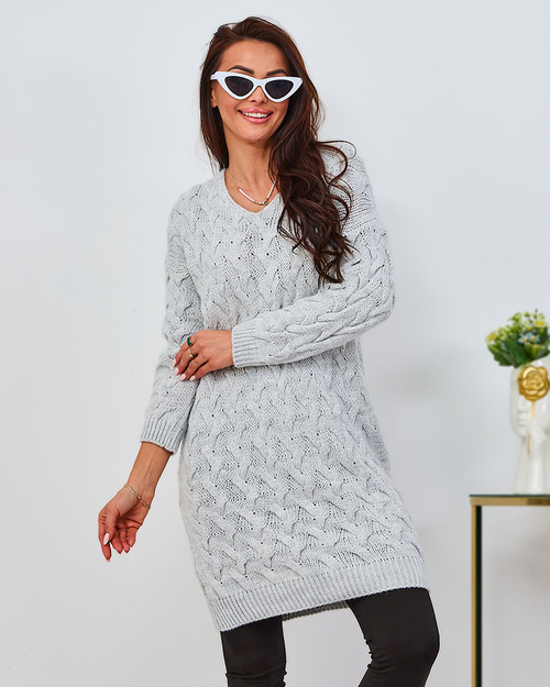 Royalfashion Světle šedé dámské svetrové šaty