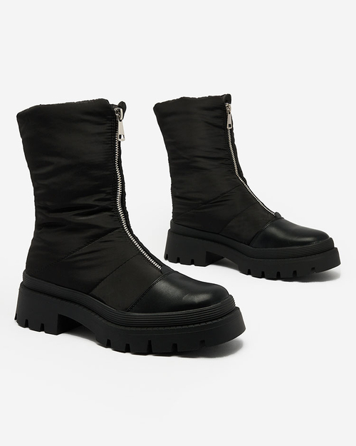 - Tyto dámské kozačky jsou jedinečnou obuví kombinující styl a pohodlí. Jsou vyrobeny z ekokůže a látky a stélky z kožešiny. Mají zapínání na zip uprostřed svršku, které jim dodává originalitu!
