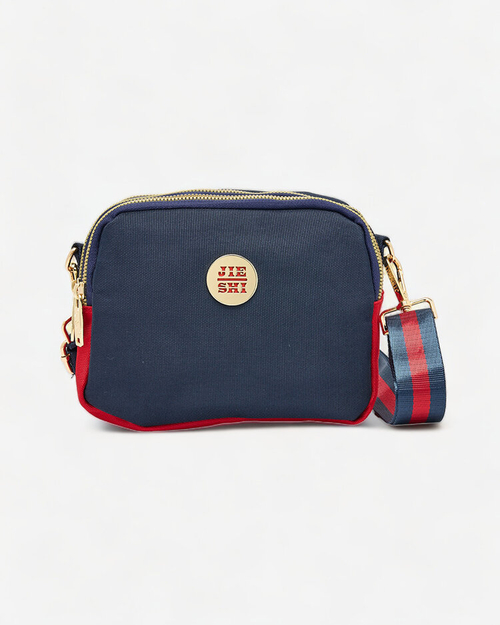• Malá dámská kabelka ze silného látkového materiálu. Model má3 barevné zipy. Kromě toho má odnímatelný, široký, nastavitelný popruh. Stylový doplněk na dlouhé procházky!